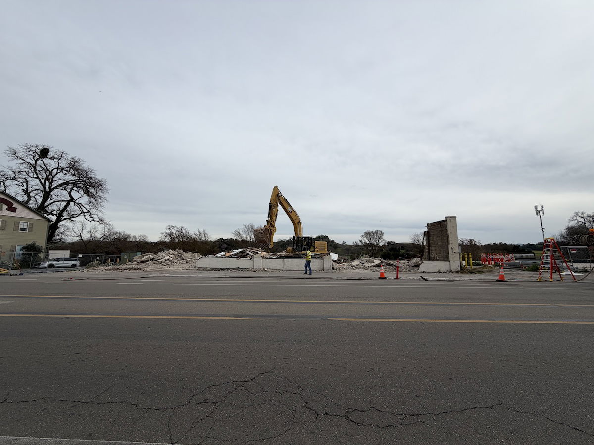 There was no large crowd gathered for the demolition, though passing motorists slowed to watch and record video. A few members of the fire department were present, along with the ABI crew overseeing the work. Crews will continue demolishing the remaining structures, leveling and grading the site in preparation for what comes next.